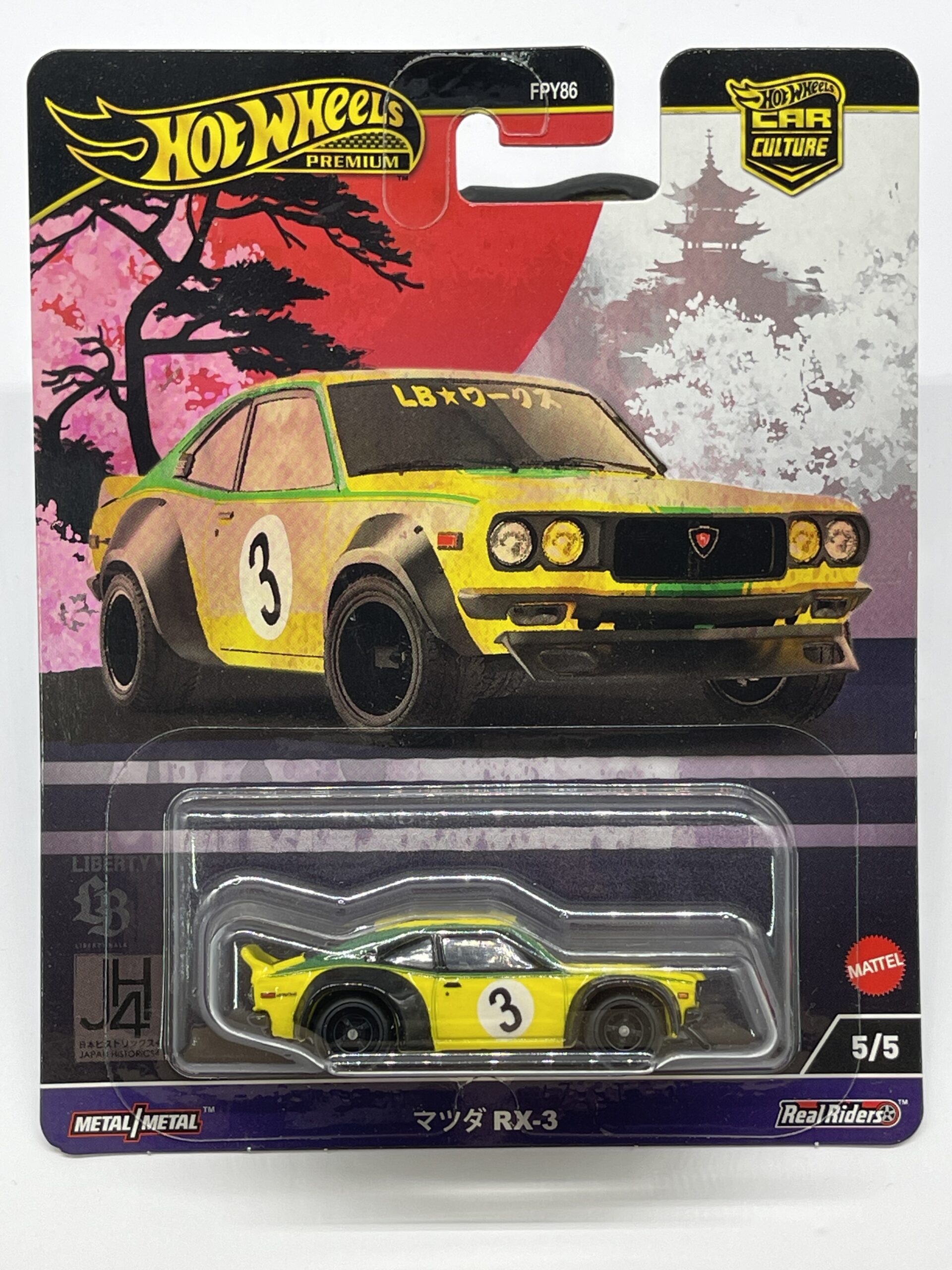 Explore the exquisite detail and vibrant design of the Hot Wheels Car Culture Mazda RX-3 from the Japan Historics 4 JH4 series. This 1:64 scale diecast model is a must-have for collectors and enthusiasts, showcasing the iconic yellow and green livery that pays homage to the car’s heritage and racing legacy. Crafted by Mattel, this piece reflects the quality and authenticity that the Hot Wheels brand is renowned for. With its fine attention to detail, this model is perfect for display or as a part of a growing collection. Suitable for ages 3 and up, it’s an excellent addition to any car culture aficionado’s array or as a unique gift for a Mazda RX-3 admirer.