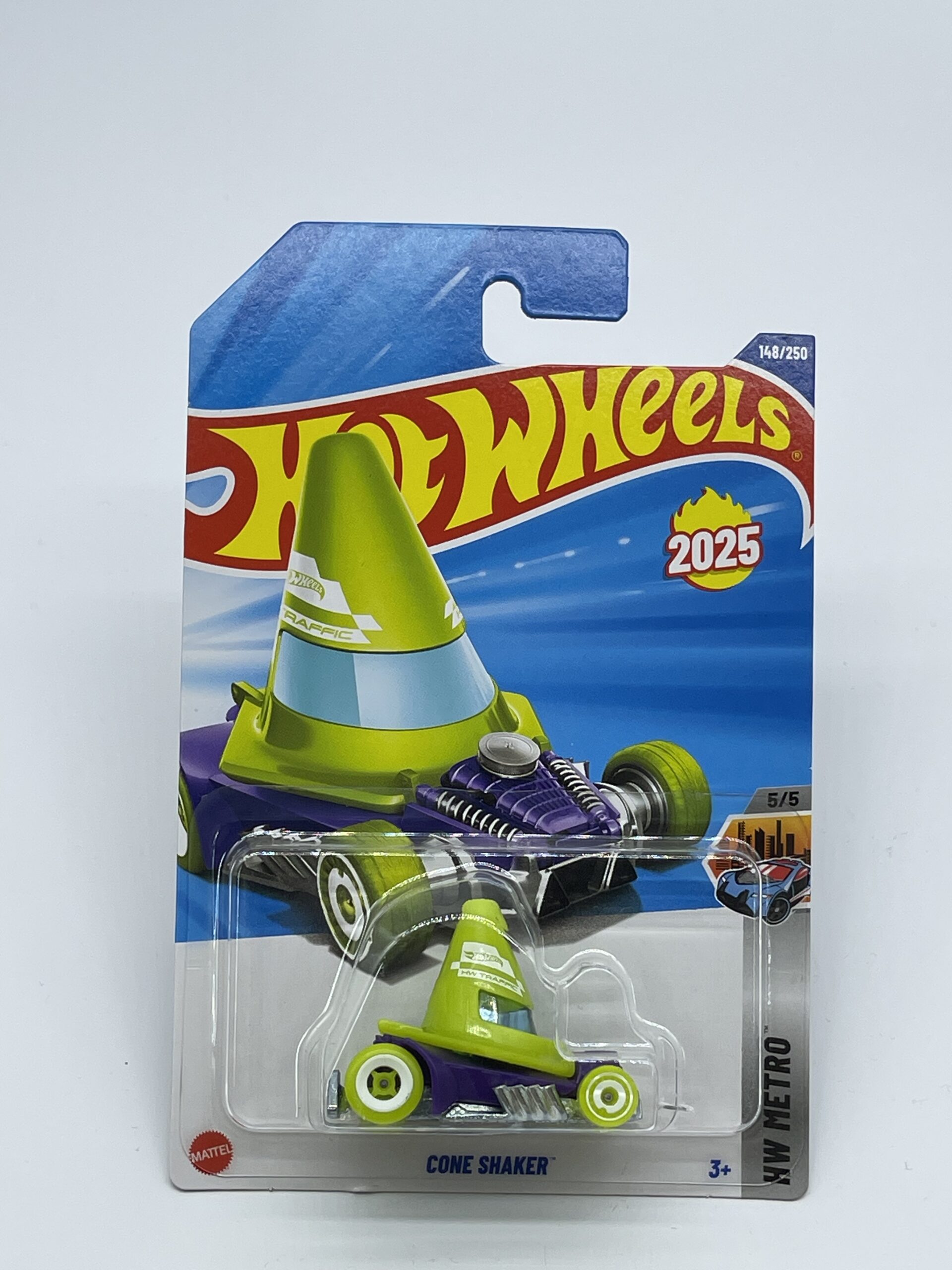 Explore the whimsical world of Hot Wheels with the Cone Shaker diecast car from the HW Metro Urban City Theme series. This unique model, adorned in a striking blend of green, purple, and silver, captures the essence of fantasy vehicles that will delight collectors and kids alike. Crafted with meticulous attention to detail, this 1:64 scale model is a testament to the iconic design and high-quality production that Hot Wheels is renowned for. Ideal for enthusiasts of all ages, the Cone Shaker is suitable for those aged 3 and up, making it a fantastic addition to any collection or playtime. It comes carded and sealed, ensuring it remains a pristine collectible or a cherished toy for imaginative play. This model car, manufactured in 2025, brings the thrill of the city and the excitement of Hot Wheels to your home.