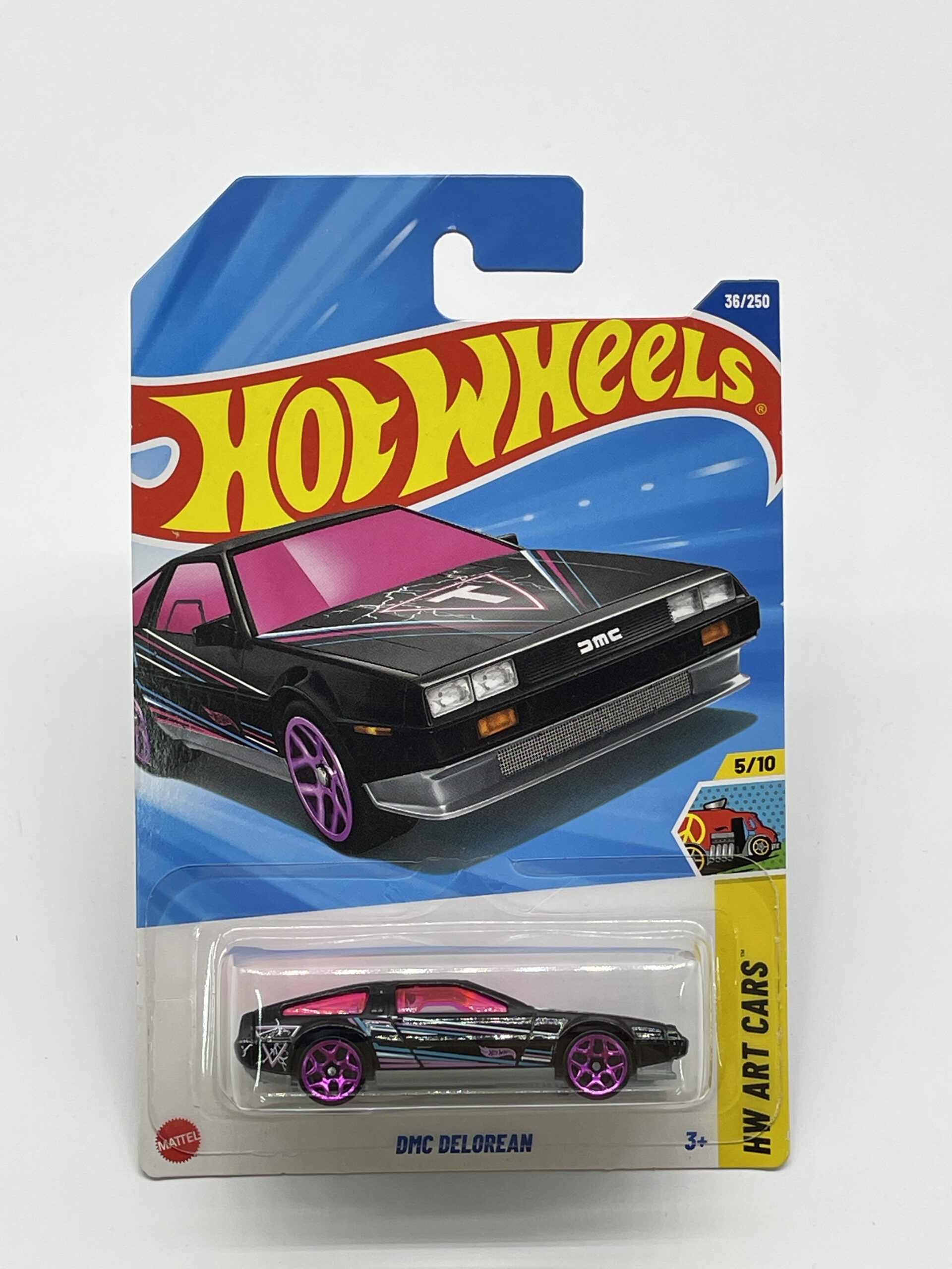 Immerse yourself in the world of diecast collectibles with the Hot Wheels DMC DeLorean from the HW Art Cars series. This 1:64 scale model, meticulously crafted for the year 2024, showcases the iconic DeLorean in its classic black finish, accented with vibrant graphics that pay homage to the vehicle’s timeless appeal and cultural significance. Whether you’re a seasoned collector or a fan of automotive history, this Hot Wheels piece is a standout representation of the 1981 DeLorean, celebrated for its appearance in a groundbreaking film. The detailed exterior and sleek interior reflect the quality and attention to detail that Hot Wheels is known for, making it a must-have for any collection.