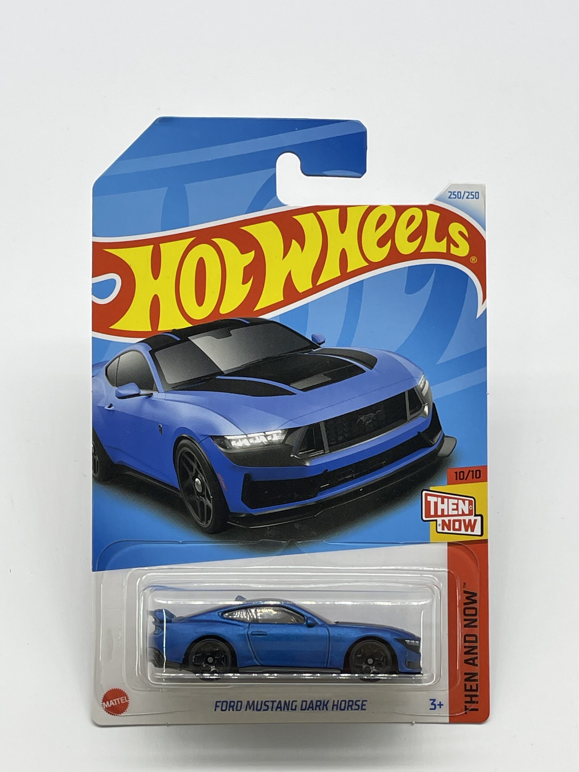 Immerse yourself in the thrill of horsepower with the Hot Wheels Ford Mustang Dark Horse, a 1:64 scale replica that captures the essence of the modern muscle car aesthetic. Dressed in a sleek flat blue, this diecast model is a standout piece from the Then and Now series, celebrating the legacy and contemporary design of the Ford brand. Crafted with precision in 2021, the model comes from a lineage of quality and detail that Hot Wheels is renowned for. This coupe type vehicle is a true representation of automotive art, making it a prized collectible for enthusiasts and a delightful find for those who appreciate the blend of nostalgia and craftsmanship.