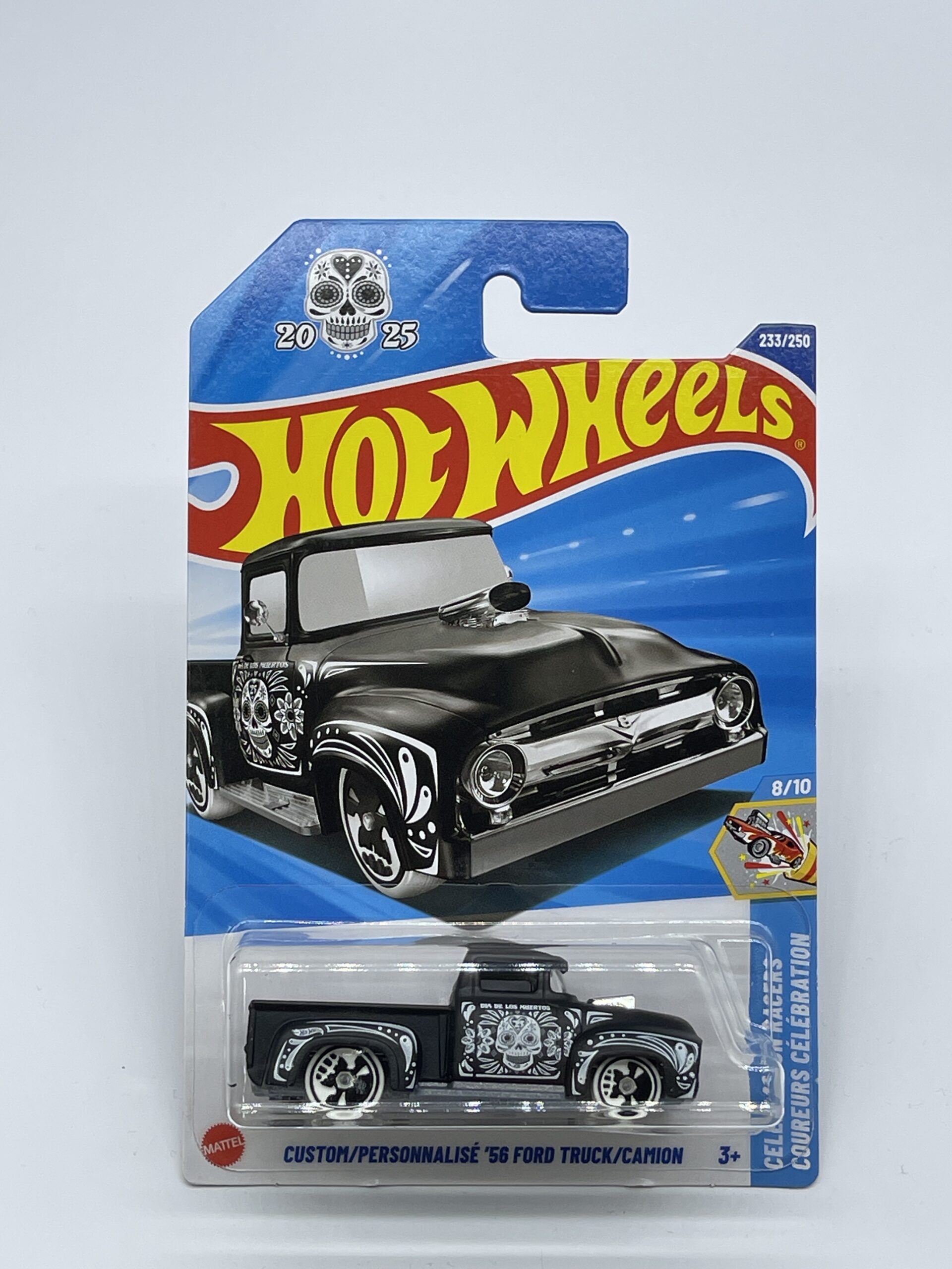 Capture the essence of speed and customisation with the Hot Wheels 2025 Celebration Racers ’56 Ford Truck in a sleek black finish. A true replica of the iconic vehicle, this 1:64 scale model is a standout piece for collectors and enthusiasts alike. It boasts an unopened box, ensuring it remains pristine for display or as a treasured addition to any Hot Wheels series collection. Crafted with meticulous attention to detail, this model features the classic Ford design from 1956, reflecting the robust heritage of American automotive history. Suitable for those aged 3 years and above, it’s a fantastic find for anyone keen on cars, racing, or simply appreciating well-made diecast models. Made in Malaysia, it carries the authenticity and quality expected from the Hot Wheels brand.