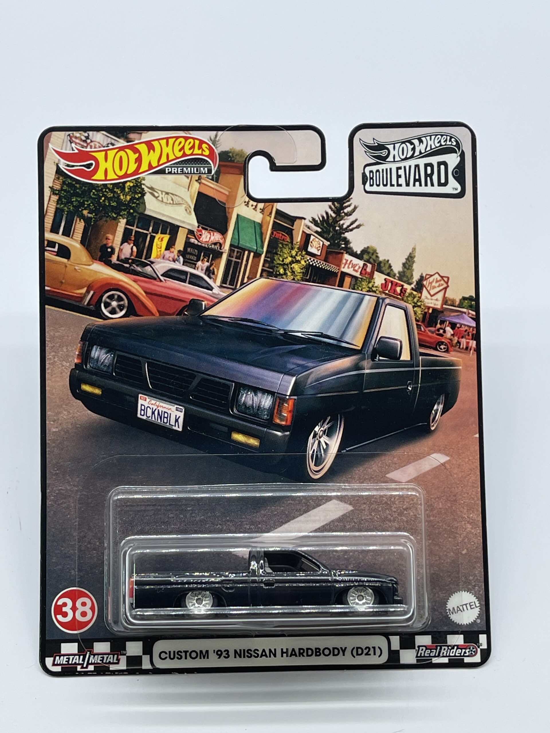 Explore the intricacies of scale replication with the Hot Wheels Premium 2023 Boulevard #38 Custom ‘93 Nissan Hardbody (D21). This 1:64 scale model captures the rugged charm of the iconic Nissan delivery truck, complete with the distinct black paintwork that pays homage to its utility and durability. Crafted with precision by the renowned brand Hot Wheels, this collectible from the Boulevard series mirrors the craftsmanship of its real-life counterpart from the year 1993. The attention to detail extends from the vehicle make to its functional design, making it a must-have for enthusiasts and collectors alike.