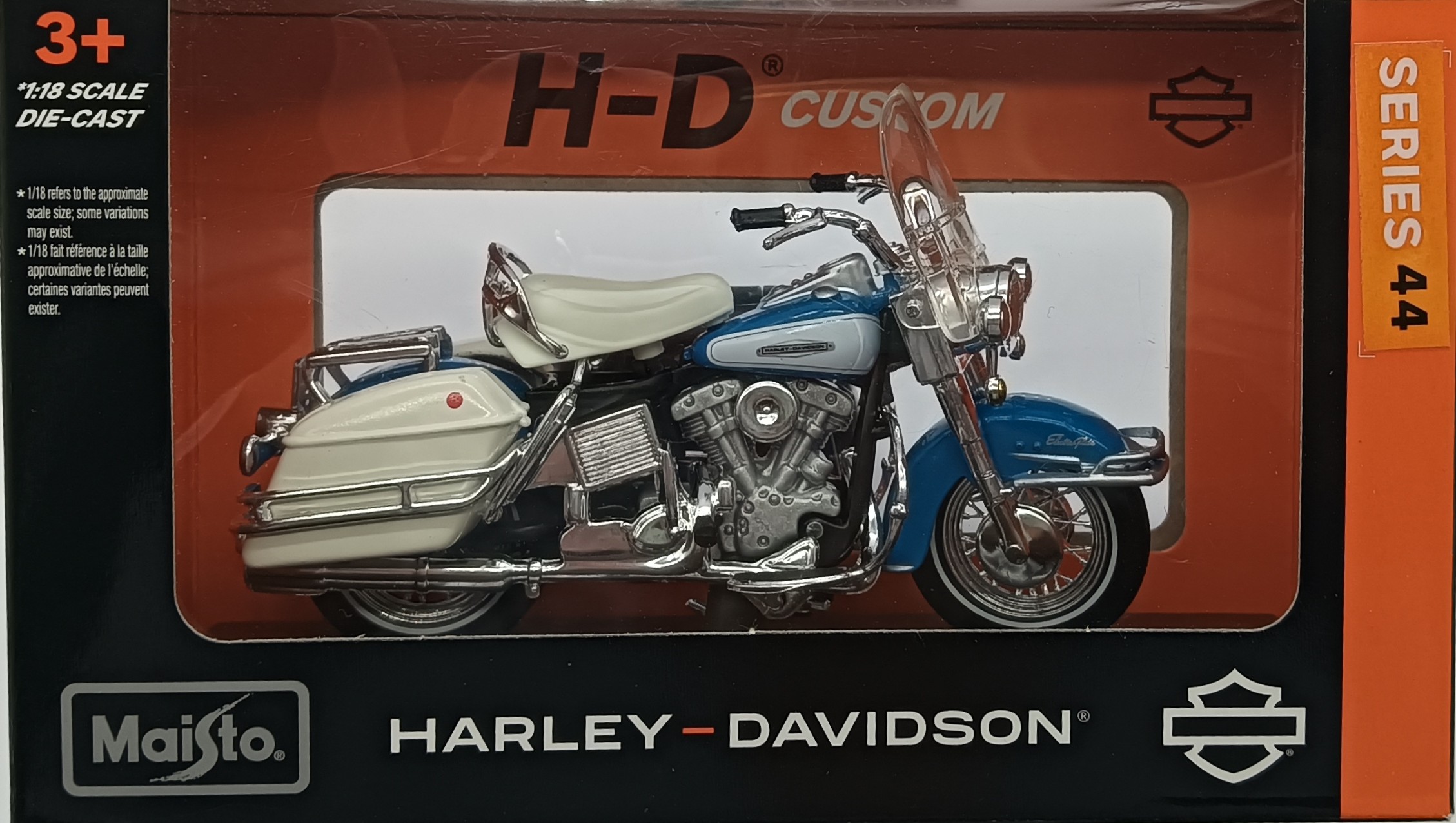 Discover the exquisite craftsmanship of the Maisto 1:18 scale Harley-Davidson Series 44 Motorcycle, a must-have for collectors and enthusiasts alike. This detailed diecast model captures the very essence of the iconic Harley-Davidson brand, replicating the classic design and vibrant blue colour that is sure to stand out in any collection. With its high-quality construction and authentic detailing, this Maisto model echoes the spirit of freedom that Harley-Davidson motorcycles are renowned for. It’s a perfect miniature tribute to the legendary two-wheeler that has captured hearts for generations. Add this piece to your showcase and celebrate the legacy of American motorcycle culture.